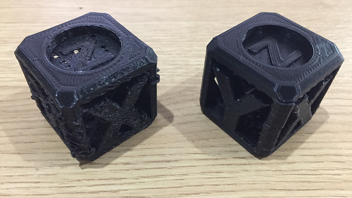 The other thing I noticed was that I didn’t actually save that much time, anyway. At 50mm/sec the cube took one hour and 48 minutes to print. Doubling the print speed cut that to an underwhelming one hour and 43 minutes. Is the loss of quality worth a five-minute time saving? No, definitely not.