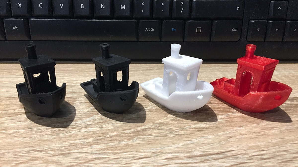 Up to now everything we’ve done with our Ender 3 has used PLA, but there are plenty of alternative 3D printer filaments on the market and we thought it was time we gave some of them a try. Last week we ordered a pack of four different materials – PETG, HIPS, nylon and flexible TPU – and to compare them with PLA we printed off a small fleet of 3D Benchy tugboats. Over the next couple of weeks we’ll cover each of these materials in more detail, but for now here’s a comparison of what they’re like to print with.