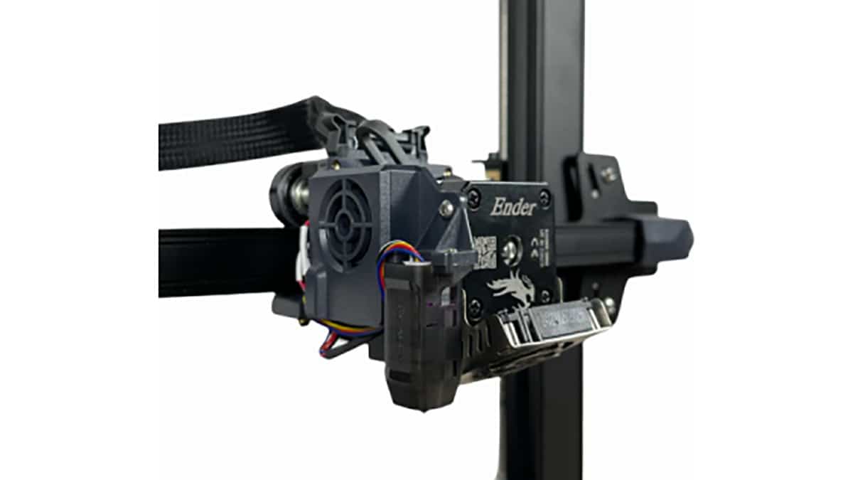 The really big deal, though, is all the new features Creality have added. There’s an updated display and control unit – it’s not a touch screen, but it looks like it should be easier to use than the original style. The extruder has been replaced with a Sprite twin-gear direct drive model, which is a lot easier to load than standard ones and also handles flexible materials much better. This is an impressively lightweight unit, too – the whole extruder assembly weighs just 210g, about a third less than most of its competitors.