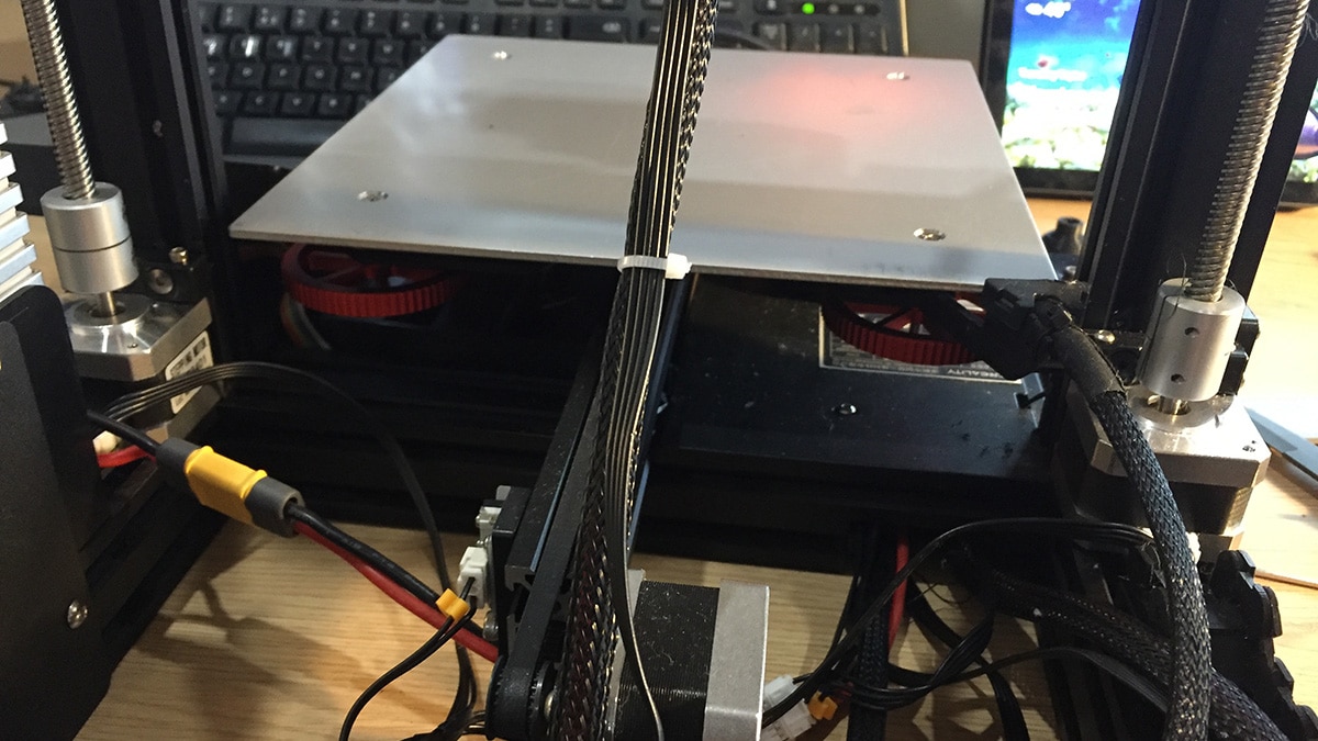 When I got the printer back into its enclosure and powered it up, everything came back to life as expected. I levelled the bed – this is not optional; it was massively out of alignment – then started printing out a new webcam bracket, and the Ender 3 just quietly got on with the job. So yes, it works!