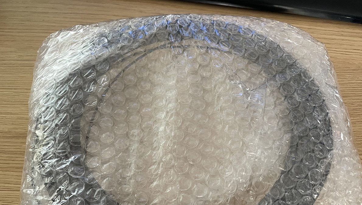 I have to say I wasn’t impressed at the packaging. The filament turned up in a loose coil, wrapped in bubble wrap – no spool, and no vacuum seal. For a material that sucks up moisture as greedily as polycarbonate that just isn’t good enough. Honestly, when you’re paying over £22 for 100g of filament – at a significant markup over buying a larger quantity – the least they could do is wind it onto a small spool and vacuum seal the stuff. A big thumbs down for the packaging, then.